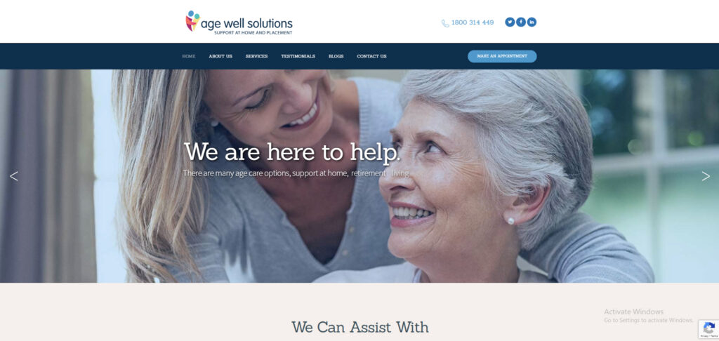 The delivered website gives Age Well Solutions a professional and compassionate online presence that supports older clients and their families in making often complex decisions. It reduces confusion by clearly explaining what services are available, who provides them, how to engage, and offers helpful resources (brochure, blog). The strong visual hierarchy, friendly imagery, and accessible CTAs help build trust and lower barriers to contact, thus assisting in client acquisition and engagement.