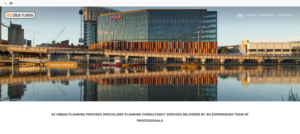 G2 Urban Planning provides specialised planning consultancy services: things like strategic planning, zoning / rezoning, project coordination, statutory planning, feasibility, due diligence, expert witness matters, and representation before planning bodies / tribunals. Their site needed to clearly communicate the complexity and breadth of what they do, showcase their experience and past projects, present their team with their credentials, and enable prospective clients to understand their process, reach out, or engage them.